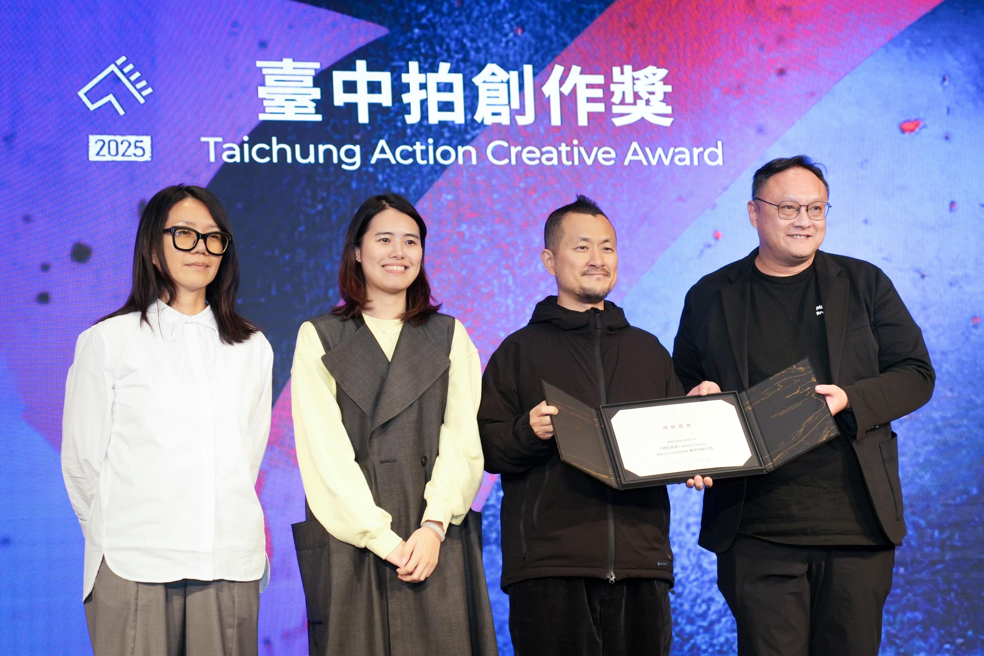 台中的影視能量正持續向外擴散,不只走向全國,更走入全球市場。台中市影視發展基金會代表台中市政府,今年首度參與金馬創投會議,於「開發中電影企劃」(FPP)單元設立「台中拍創作獎」,提供新台幣 30 萬元獎金,實質鼓勵具備潛力在台中落地拍攝的電影企劃。此屆「台中拍創作獎」由知名導演九把刀的新作《神在我家》獲得殊榮,該片以台中新社在地信仰——「九庄媽輪祀」文化為核心,呈現濃厚的土地情感與文化價值,導演九把刀受獎時也高呼「一定不會讓台中失望!」